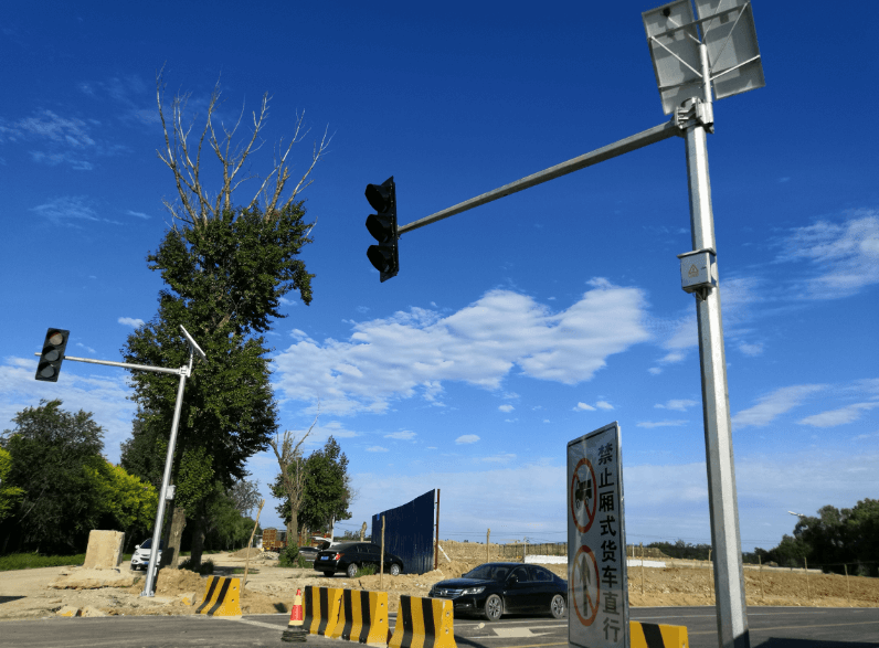 ,由于此路段不便走地下線,故此本次設(shè)計(jì)全部為太陽(yáng)能光伏發(fā)電,紅綠燈監(jiān)控桿安裝完成后將為機(jī)場(chǎng)周圍居民提供出行便利條件。
