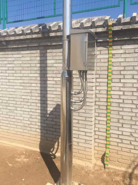 中國石油場站,壓氣站304不銹鋼監(jiān)控桿施工現(xiàn)場,監(jiān)控桿高度4.5米,材質(zhì)為純304不銹鋼,壁厚4mm。